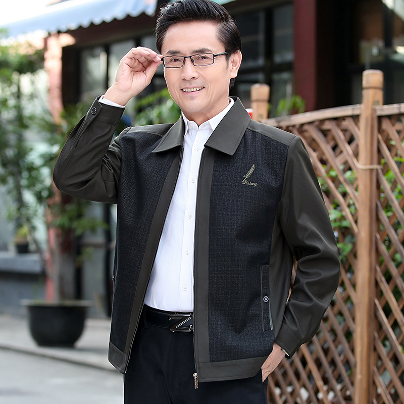 爸爸秋装外套中年休闲夹克男装春秋季中老年男士上衣老人外套爷爷 - 嘉联企业