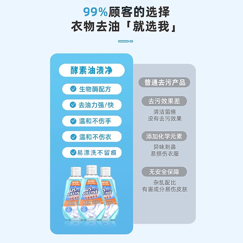 Jiffine衣物渗透清洁剂衣领净有效去污油渍洗衣服发黄喷雾干洗剂 - jiffine旗舰店