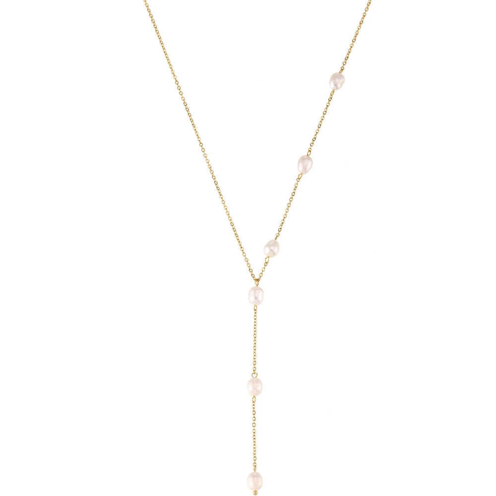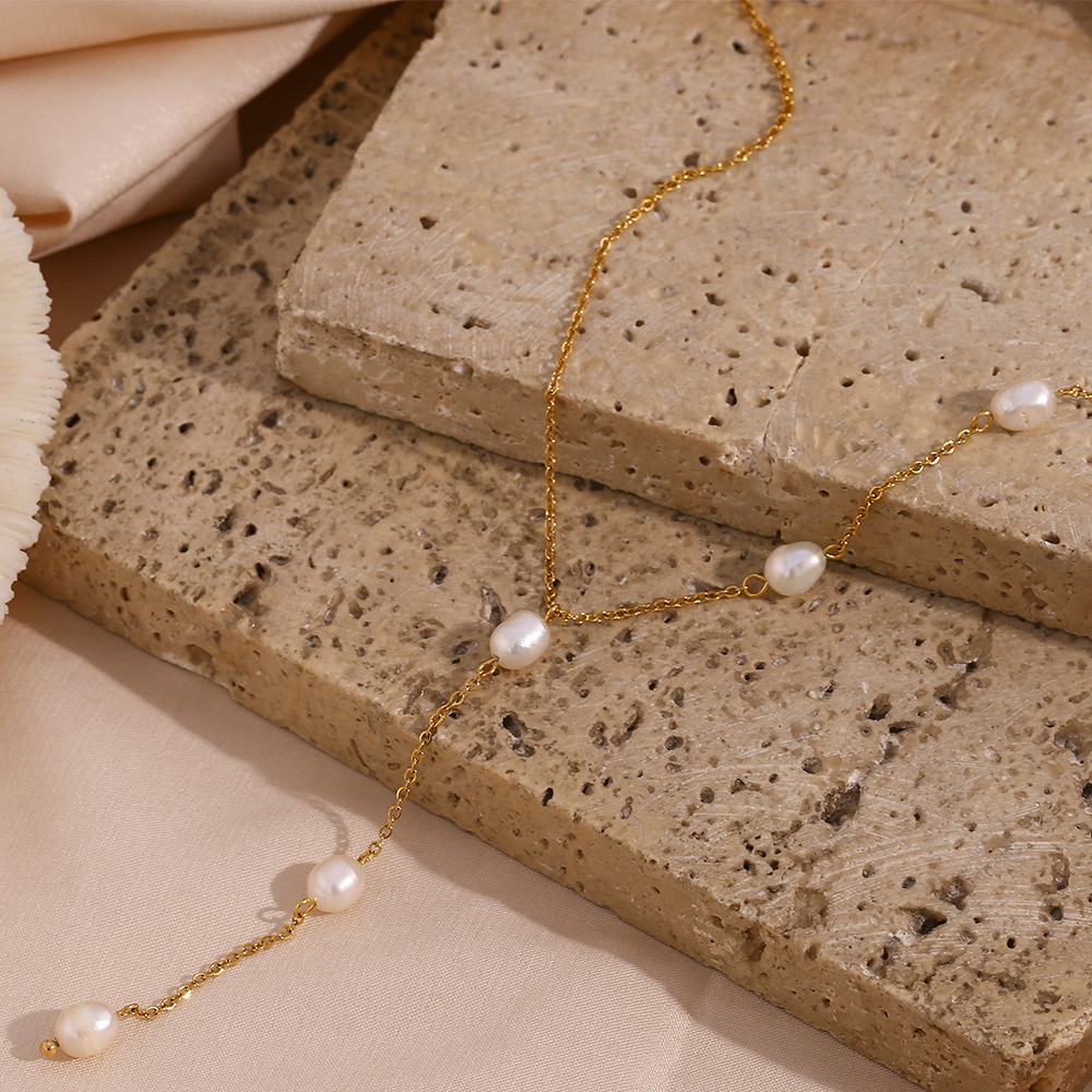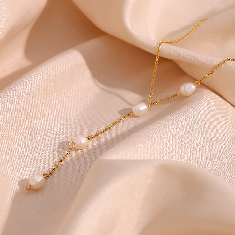 欧美ins时尚简约流行项坠饰品女 小众轻奢不锈钢淡水珍珠Y型链条 - Ebuyjewelry国际站快潮流珠宝店