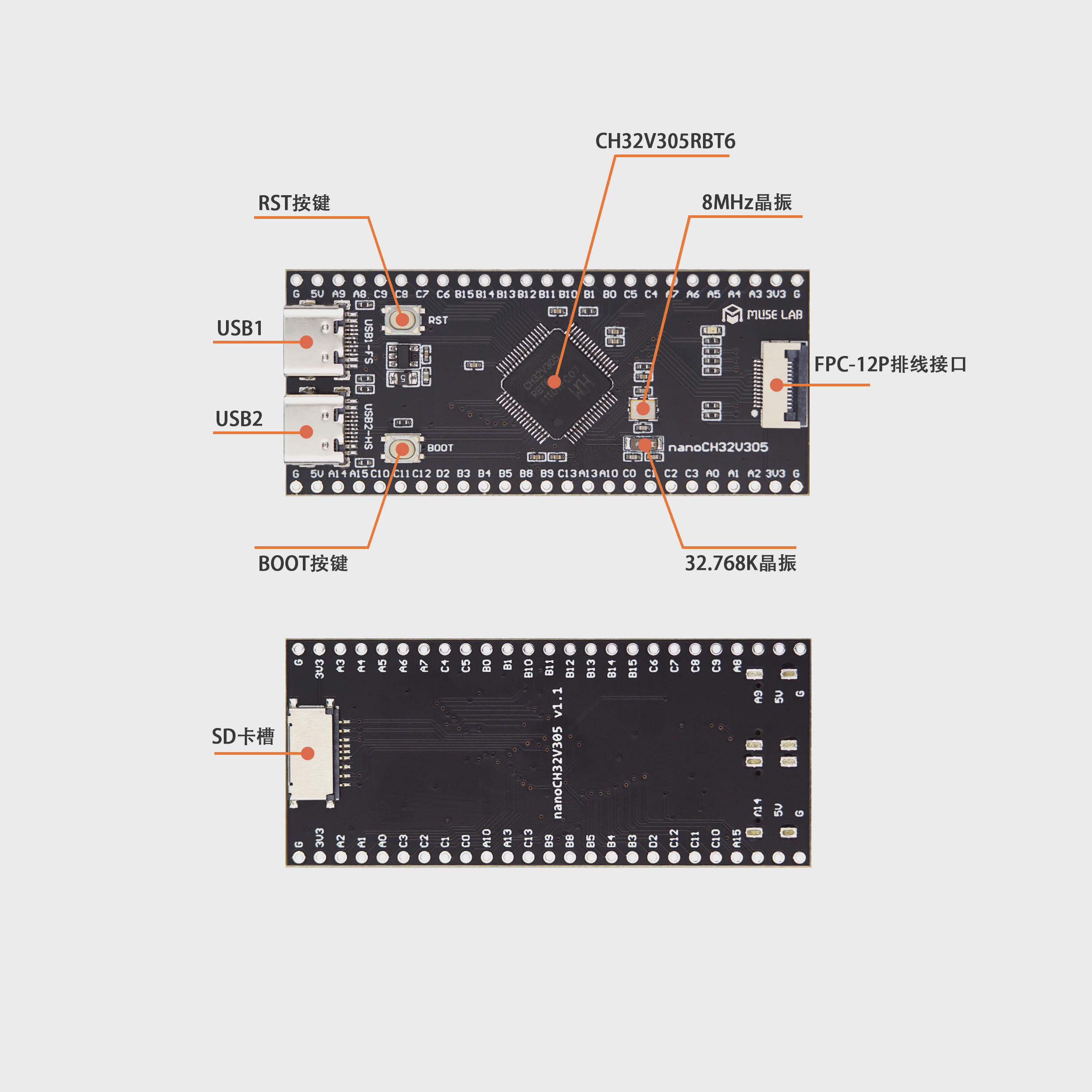 CH32V305开发板最小系统板核心板RISC-V开源双TYPE C接口USB高速 - 珺乐光绘歌专卖店