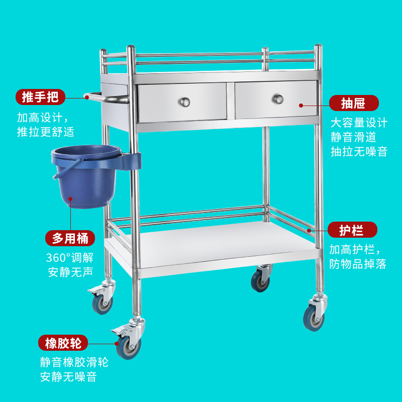 您的位置:他他商城  >   >  医用手推车不锈钢医疗小推车手术移动置物架O治疗车器械车万向轮