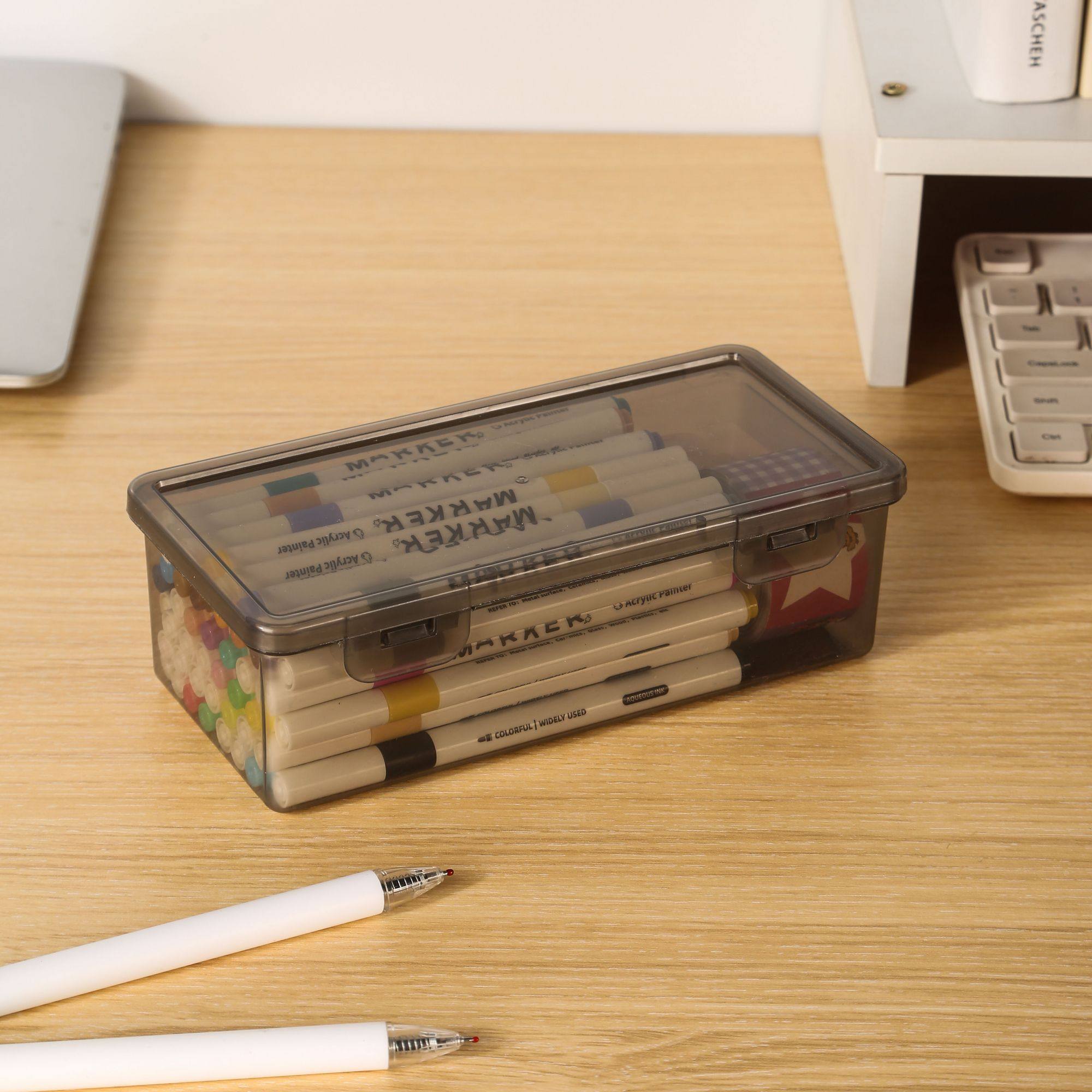 您的位置:他他商城  >  居家  >  简约桌面透明笔盒学生马克笔水彩笔带盖铅笔画收纳盒大容量加厚