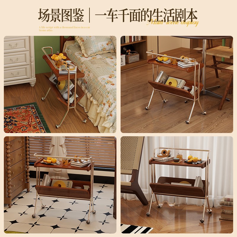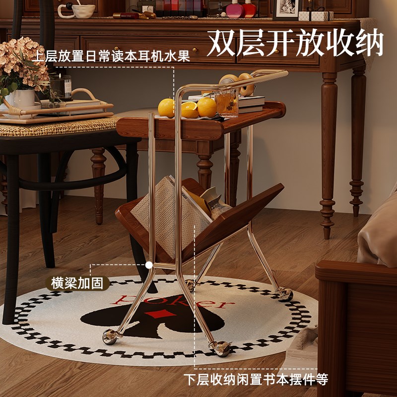 可移动边几实木小l推车客厅家用沙发边柜小户型收纳置物架子床头