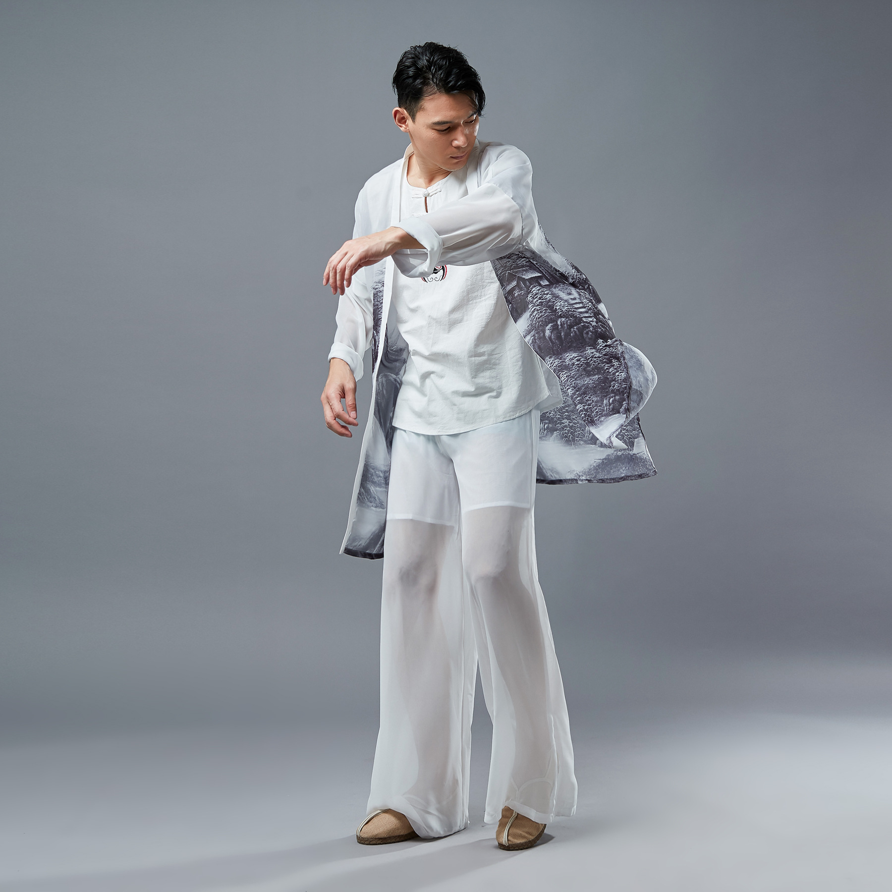 云梦集2025新款男水墨雪纺衫休闲文艺风薄款长袖印花衫遮阳薄款外 - XAXZ旗舰店