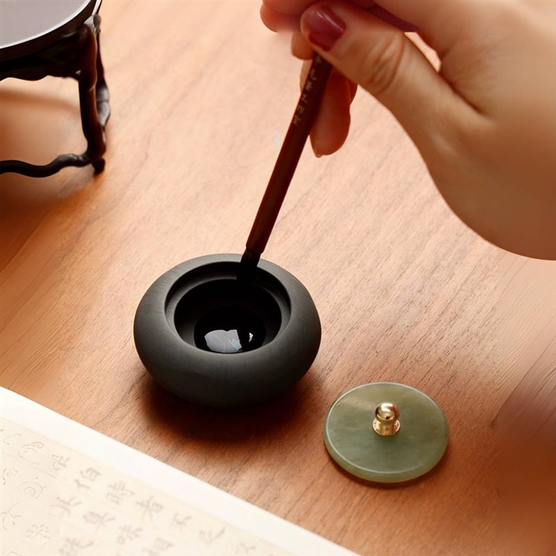 您的位置:他他商城  >   >  小楷玉石砚台带盖迷你掌s中砚玉石盖防蒸发小楷书法专用墨池小墨