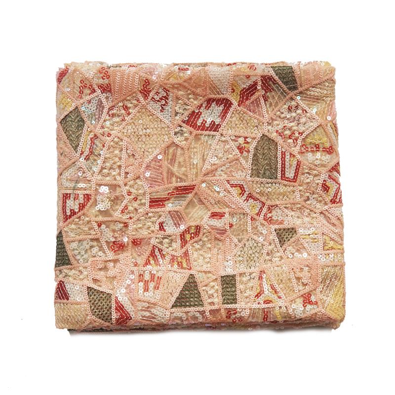 S15重工色织几何图形菱形立体亮片绣花软网纱布料服装旗袍面料