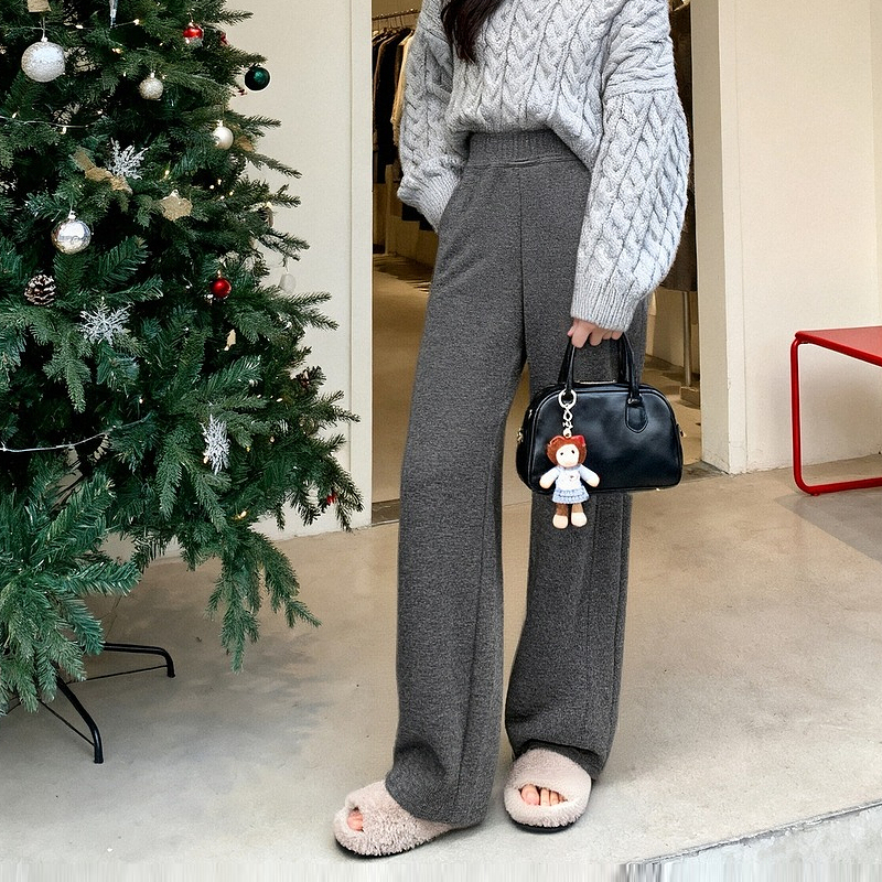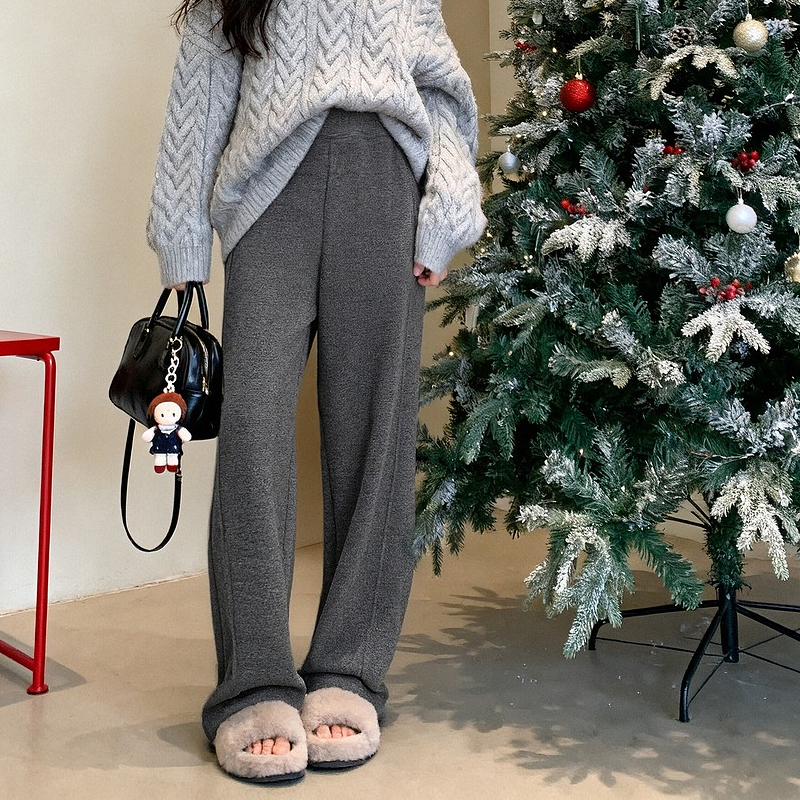 Basic House/百家好纯色高腰阔腿休闲裤秋冬新款宽松弯刀裤长裤女 - BASICHOUSE女装旗舰店