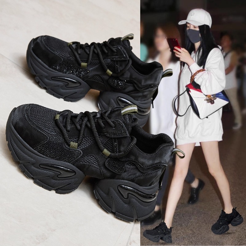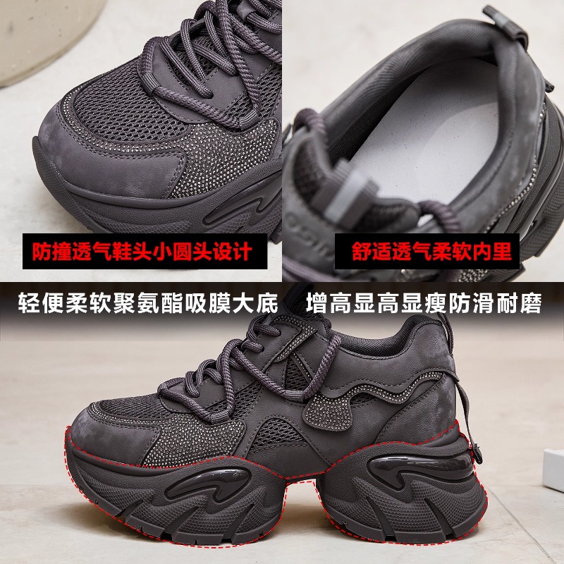 真皮厚底老爹鞋女2025新款秋季百搭增高水钻女鞋秋冬休闲运动鞋子 - 诚信女鞋霸