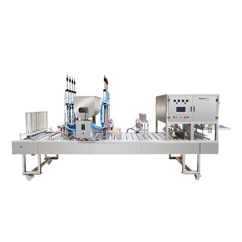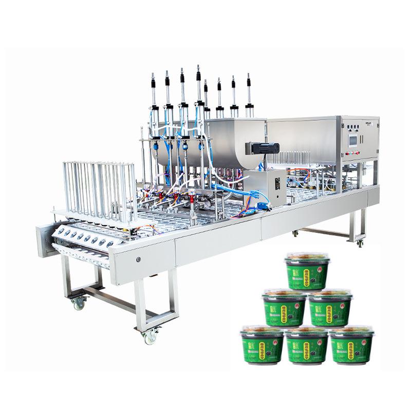 PET/PP塑料盒全自动灌装封口压盖一体机食品纸塑杯自动分装封口机