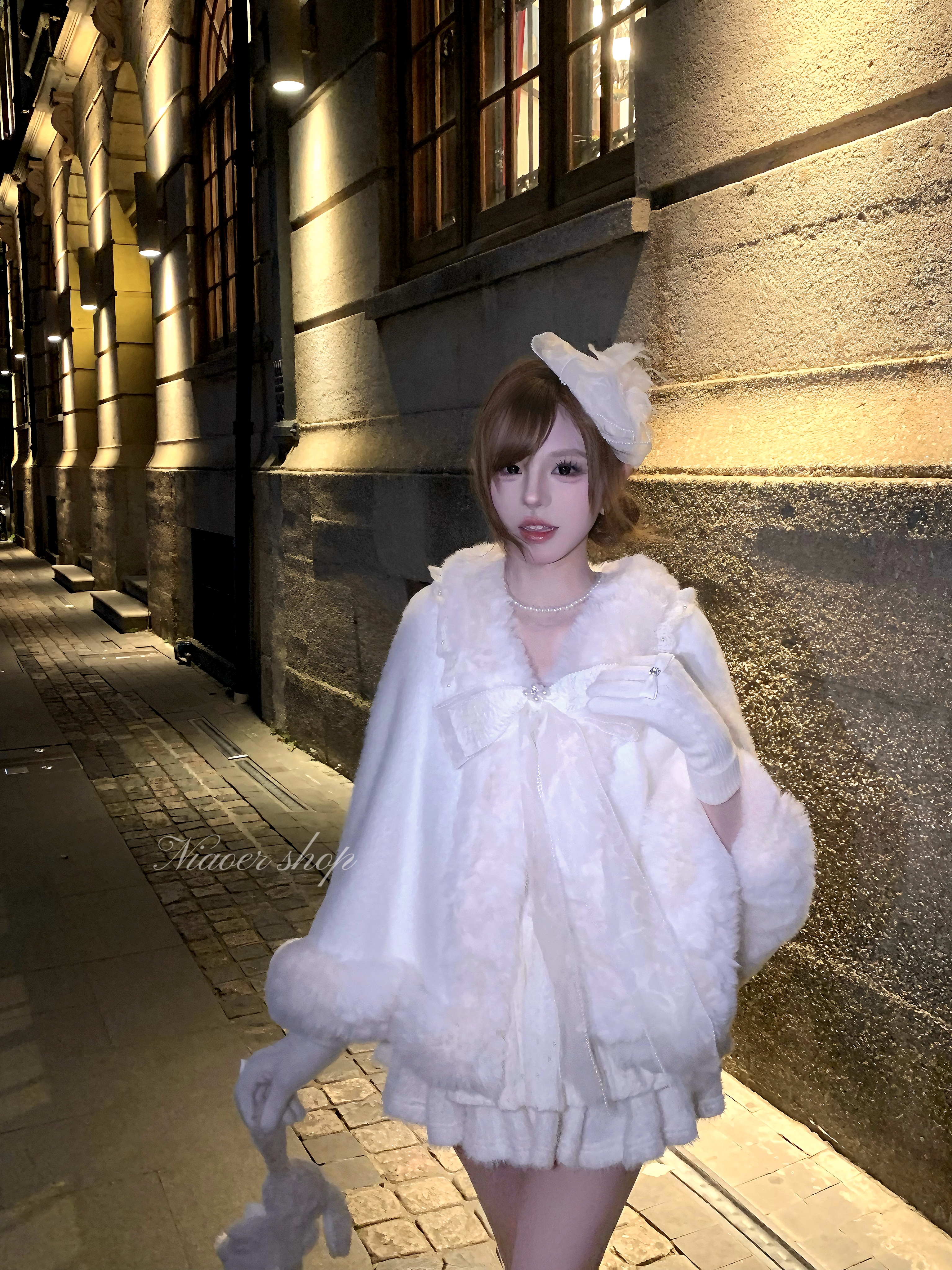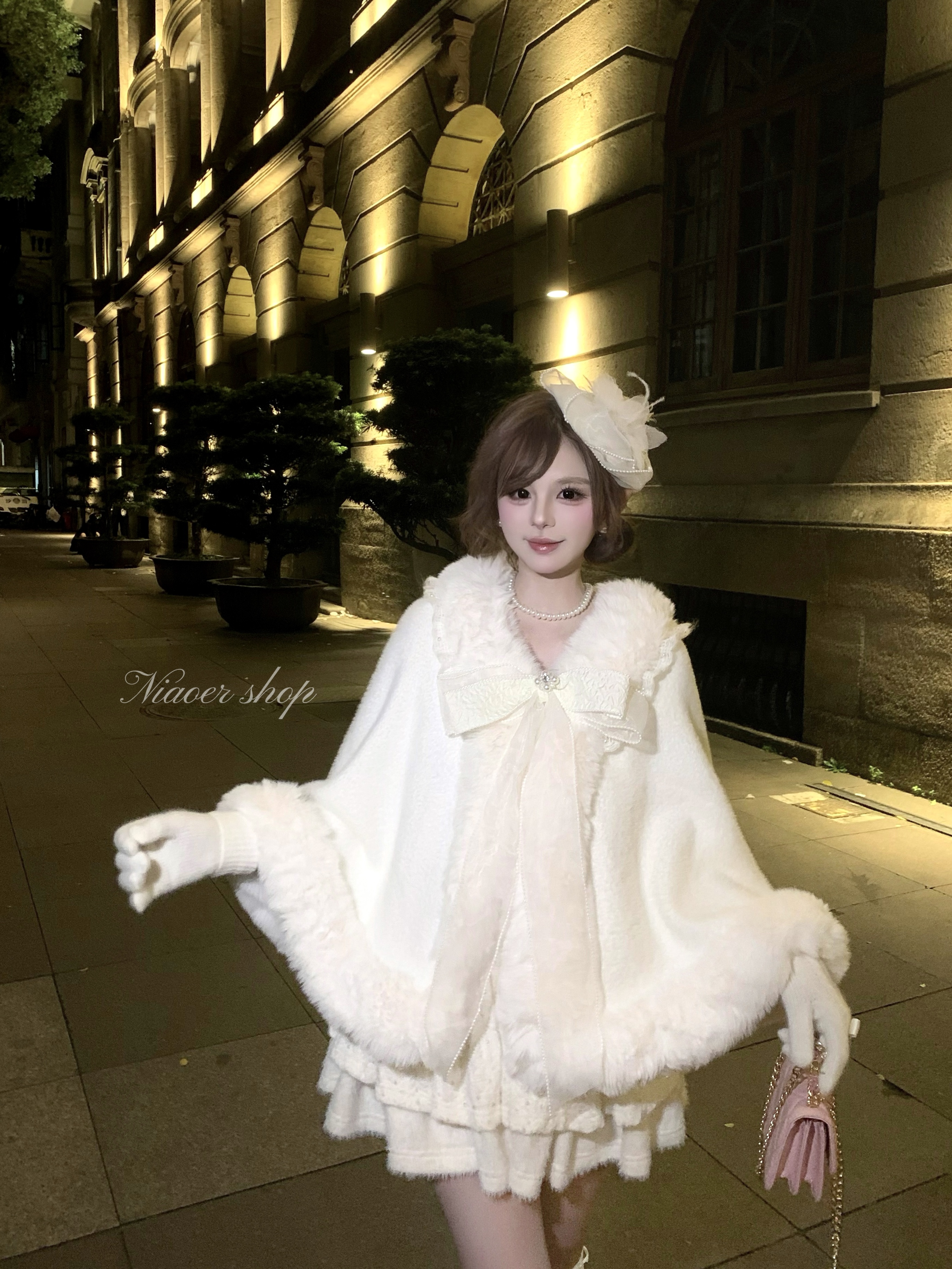 NIAOER雪白精致千金风斗篷女款秋冬保暖加厚毛绒披风外套 - NIAOER独立设计
