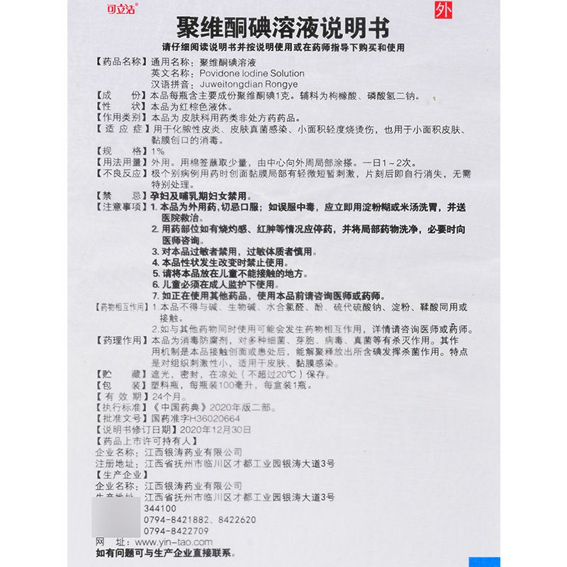 可立洁 聚维酮碘溶液 1%*100ml 用于化脓性皮炎 皮肤真菌感染 - 粤药华医药专营店