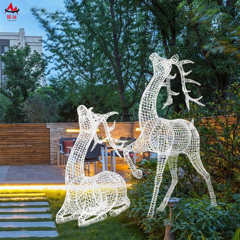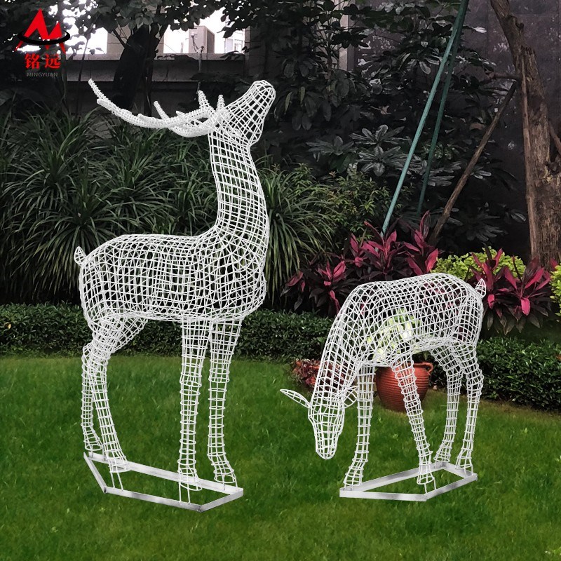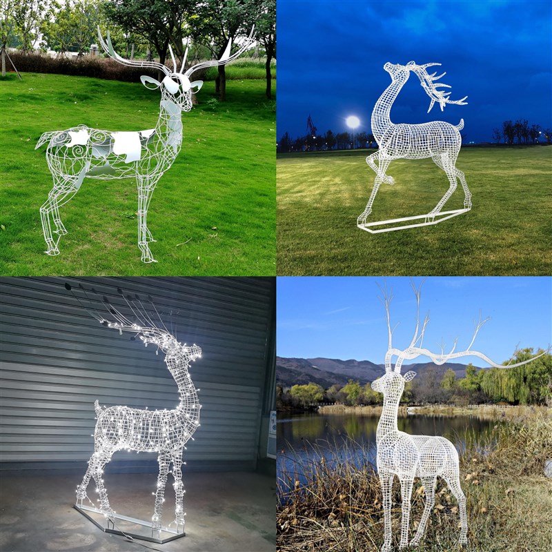 不锈钢镂a空梅花鹿雕塑户外公园林景观小区售楼部草坪造景装饰摆