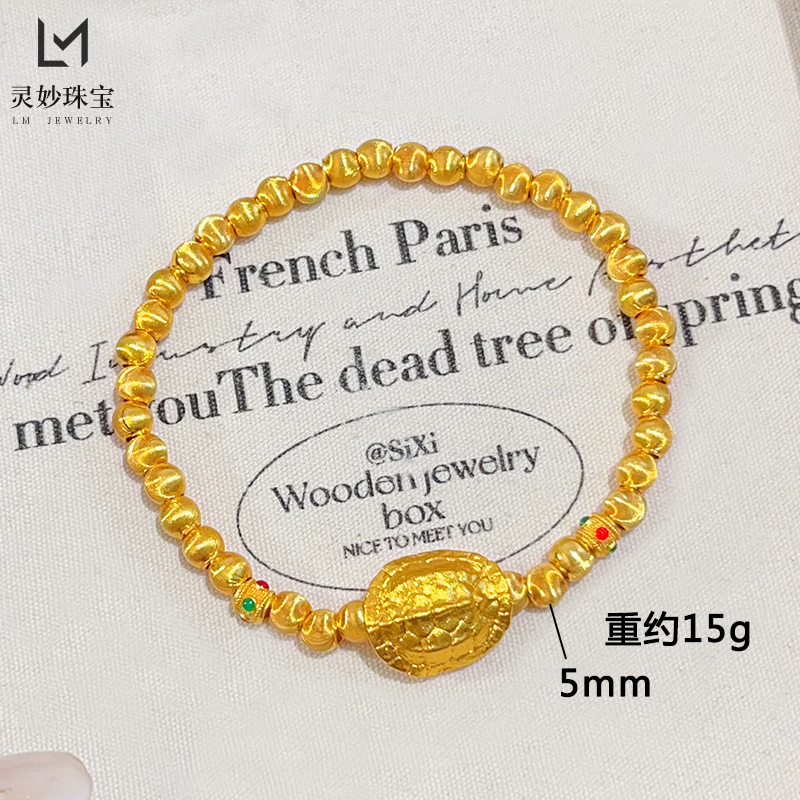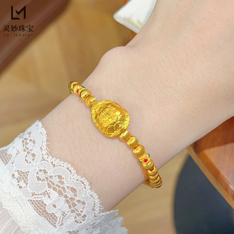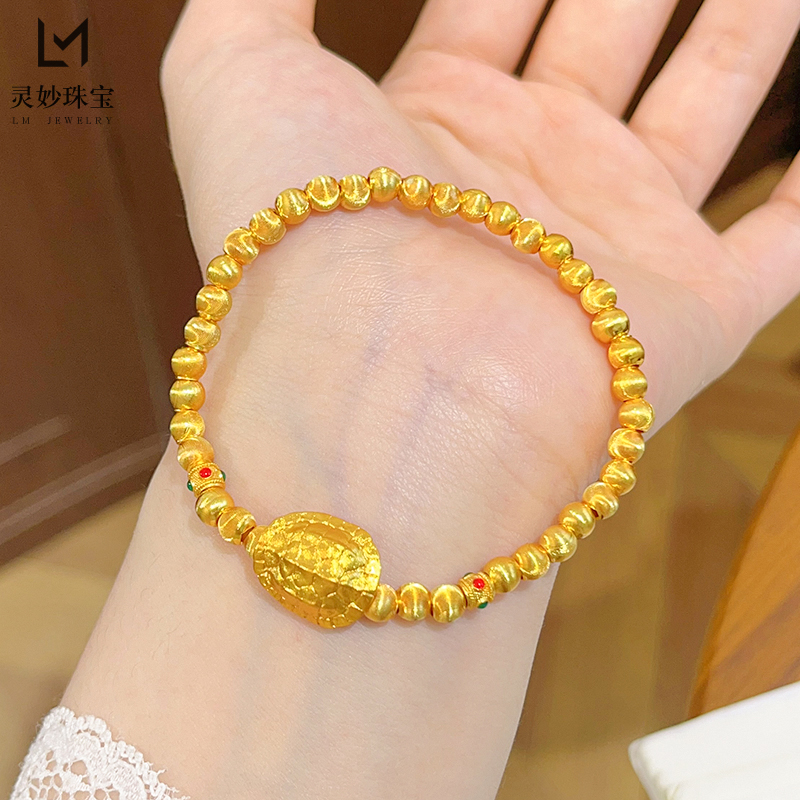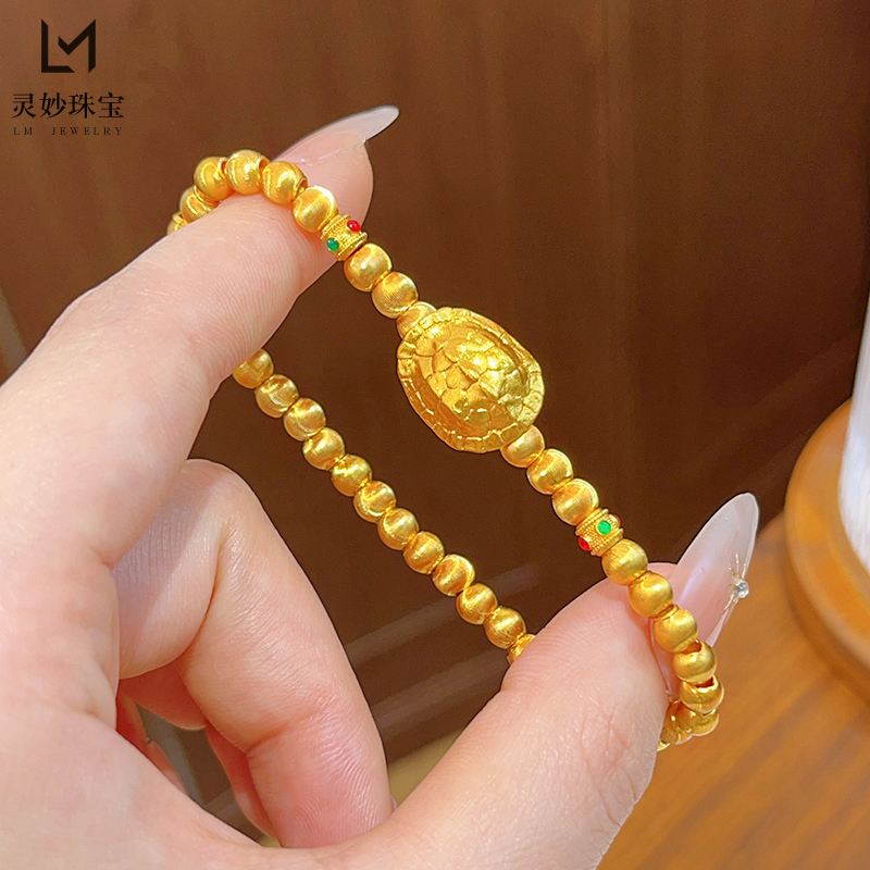 新中式国风沙金拉丝猫眼富甲天下手串复古龟壳转运珠手链女送礼物 - 灵妙水晶珠宝