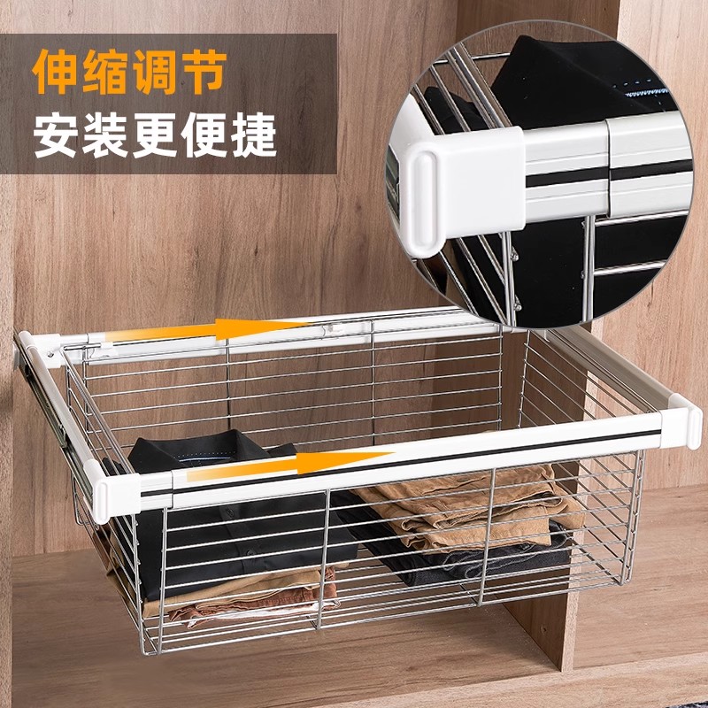 衣柜拉篮抽屉式伸缩裤架家用衣帽间拉篮内置收纳藤篮裤抽五金配件 - 凝天工厂直店