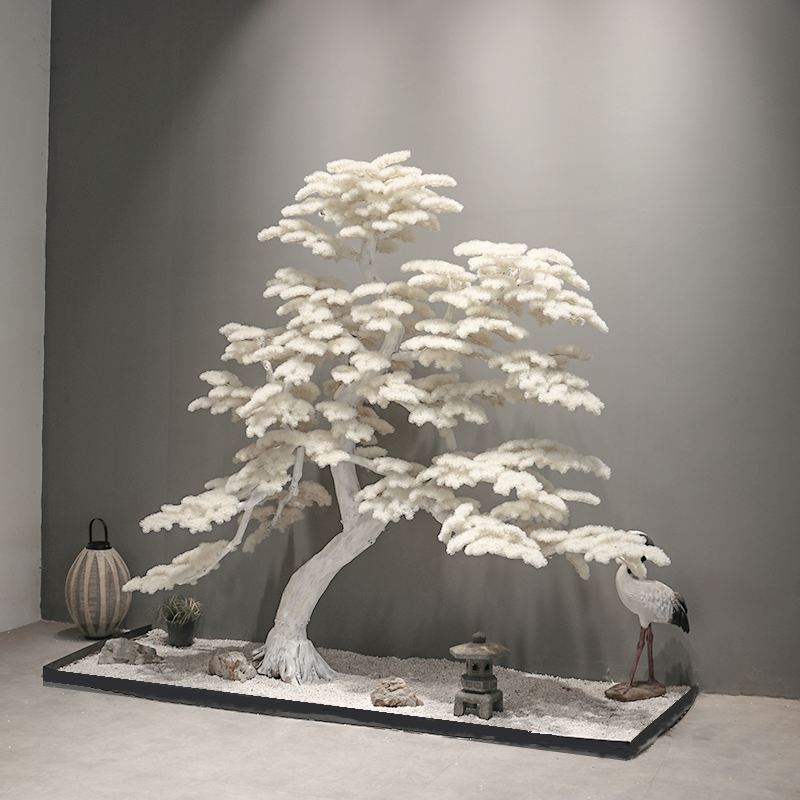 您的位置:他他商城  >   >  仿真松树雪松白色迎客松玄关橱窗造景大型仿真树中式禅意装饰假树