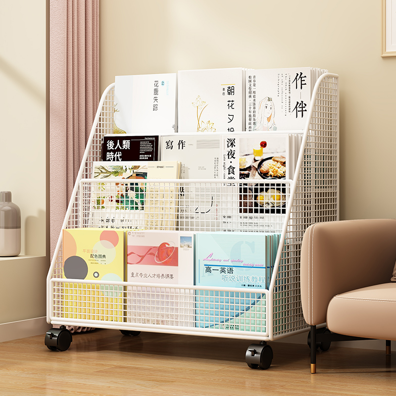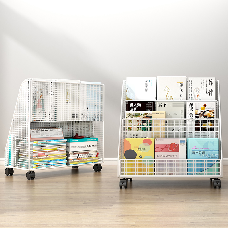 速发铁童书架阅读架落地置物架绘层收纳架儿艺简易多本移动桌下架