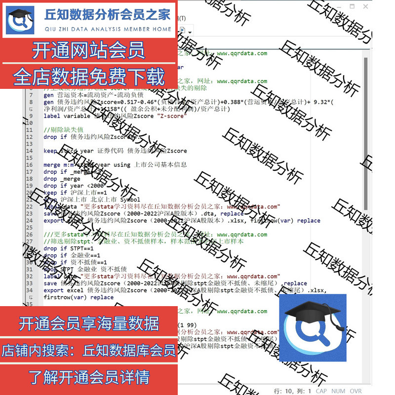 债务违约风险Zscore模型Stata代码过程2000-2022匹配行业剔除缩尾 - 丘知数据分析官方店