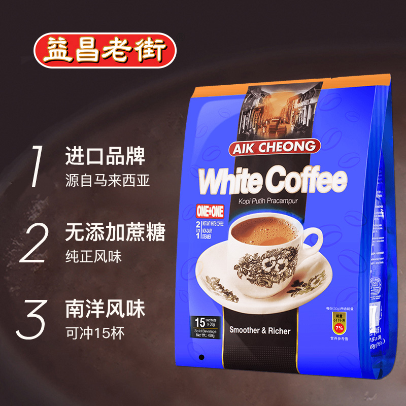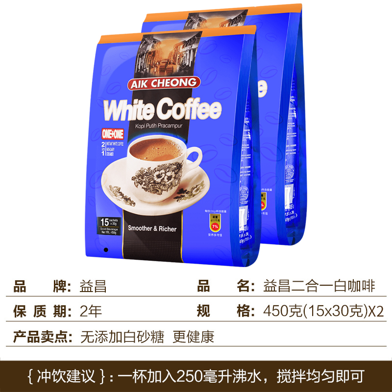 马来西亚原装进口益昌二合一无蔗糖白咖啡粉*3袋组合装