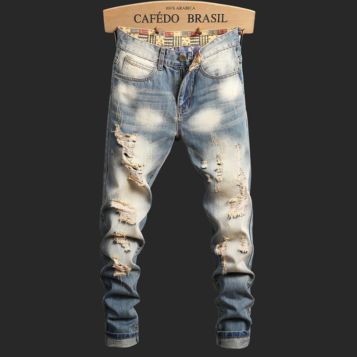 Men's retro distressed denim pants牛仔长裤男秋复古宽松直筒裤 - Beautiful clothing