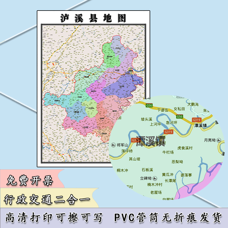 泸溪县地图1.1m现货防水贴图湖南省湘西土家族苗族自治州区域划分 - 源本穑地图服务中心