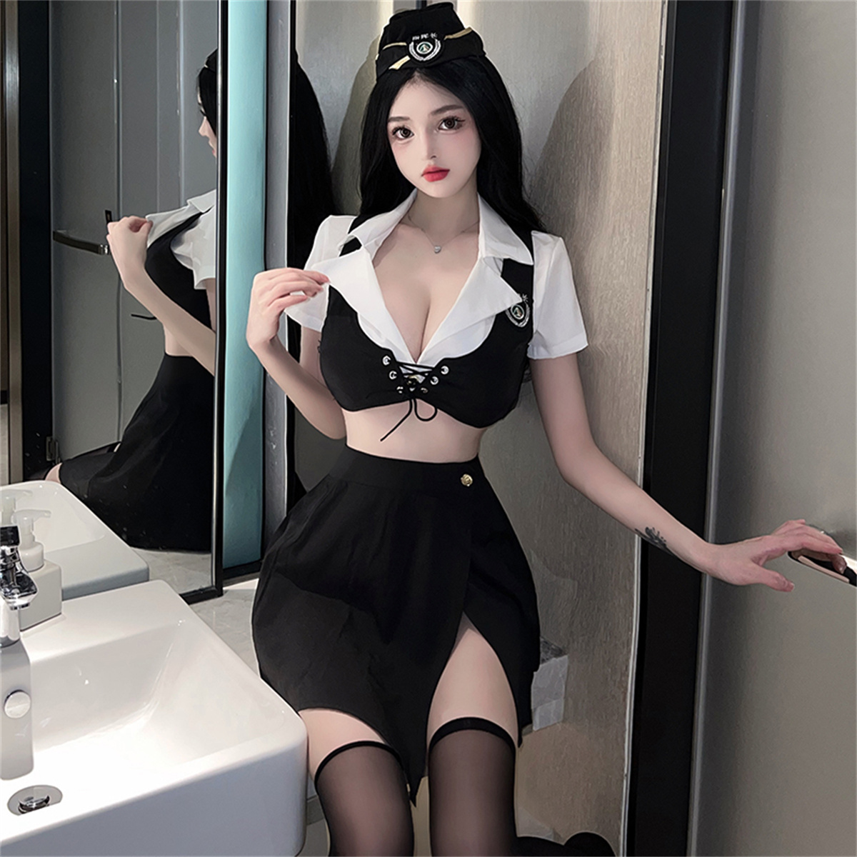 您的位置:他他商城  >   >  空姐制服套装角色扮演性感黑丝长筒系带显胸秘书主播女警服夜店女