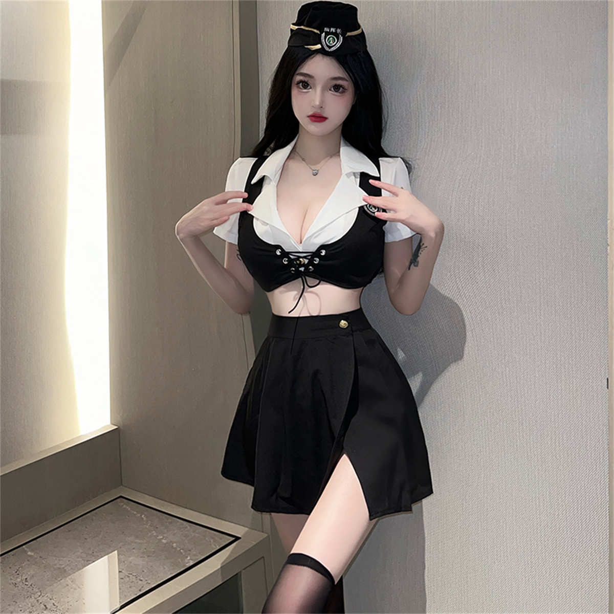 空姐制服套装角色扮演性感黑丝长筒系带显胸秘书主播女警服夜店女 - 粘你的猫 LY