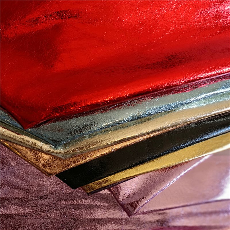 新款纺织爆裂纹皮革面料自粘金属皮F标皮革工厂镭射革鞋材配皮料