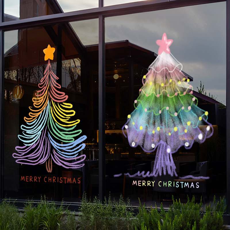 圣诞节装饰场景氛围布置窗贴节日圣诞树装扮静电贴橱窗玻璃门贴纸