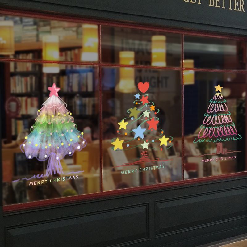 圣诞节装饰场景氛围布置窗贴节日圣诞树装扮静电贴橱窗玻璃门贴纸 - 雨梅科技店