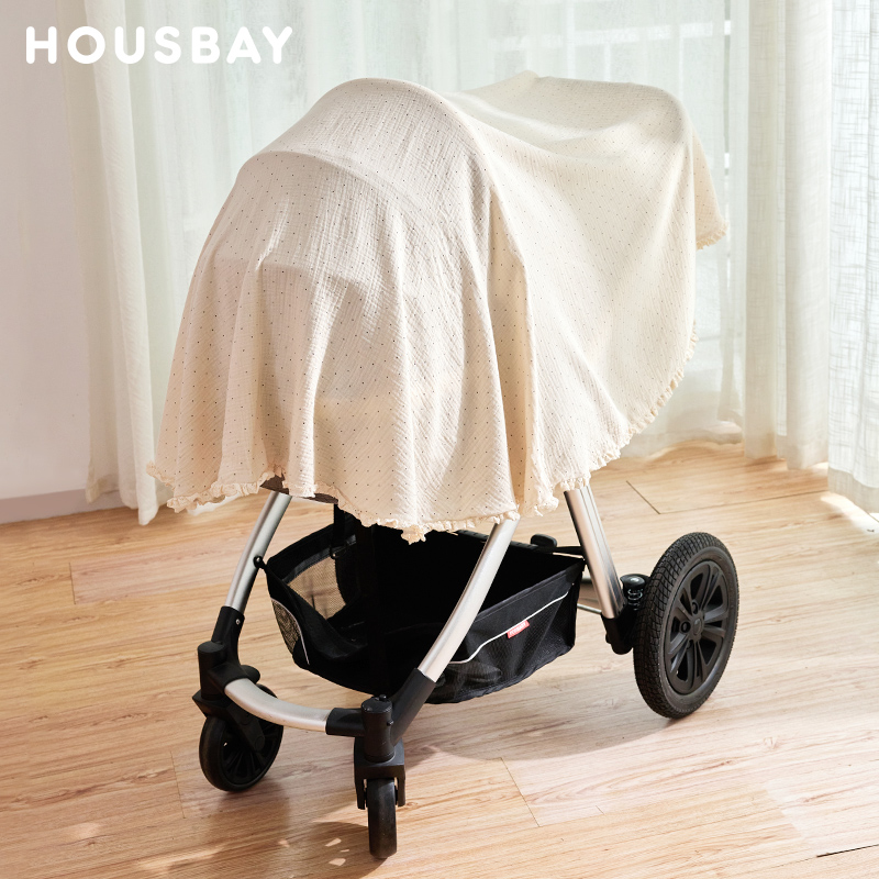 和氏贝纯棉褶纱婴儿推车安全座椅防晒巾挡光遮阳布加大可覆盖 - 彬超企业店