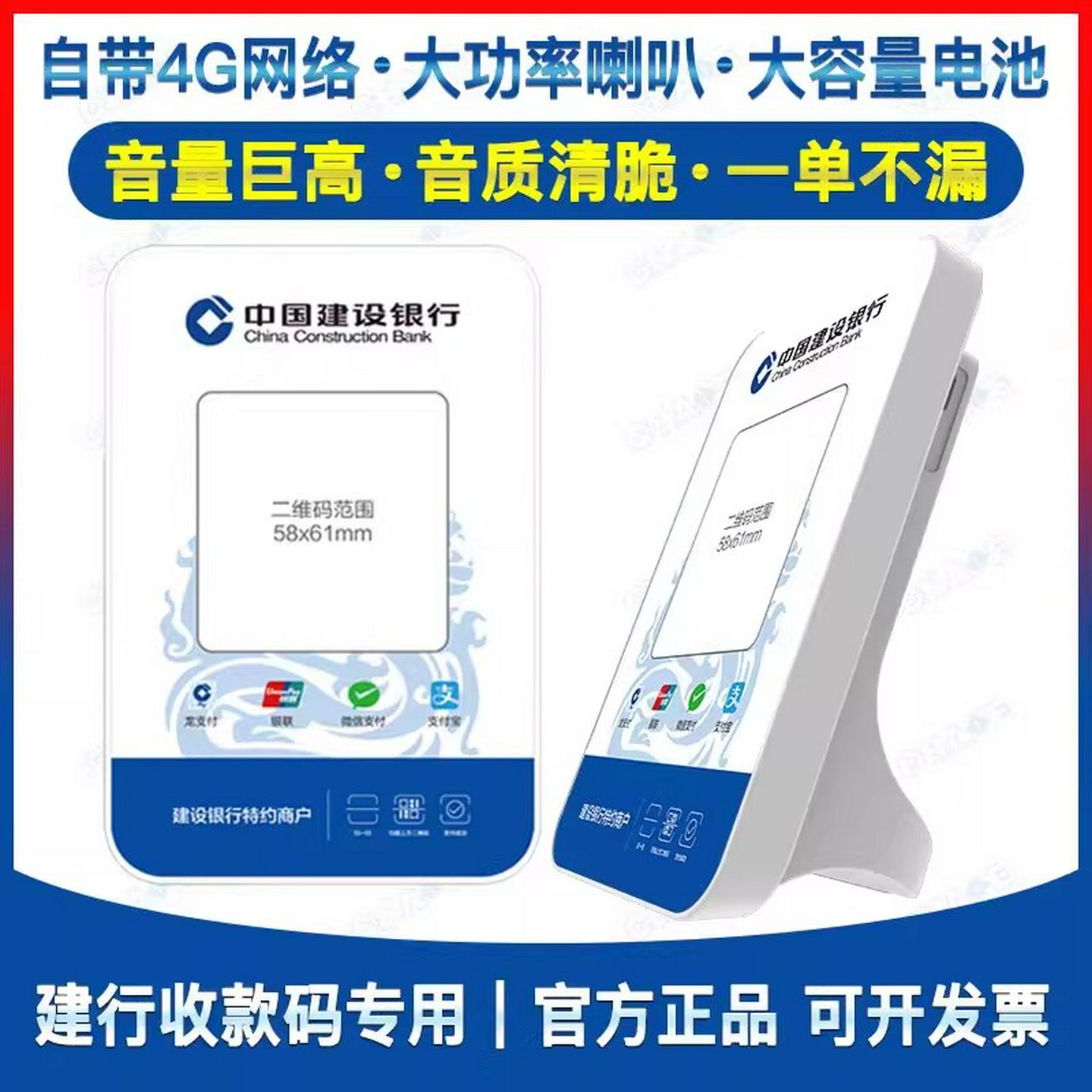 建行龙支付音响班克音箱云喇叭扫码收款播报语音收钱建信播放器 - 工厂直销超市
