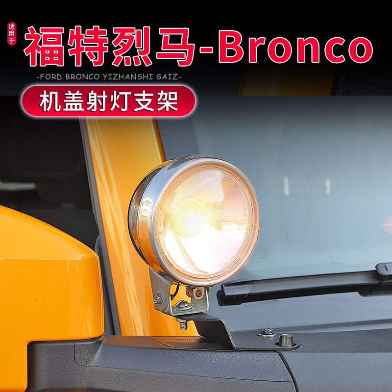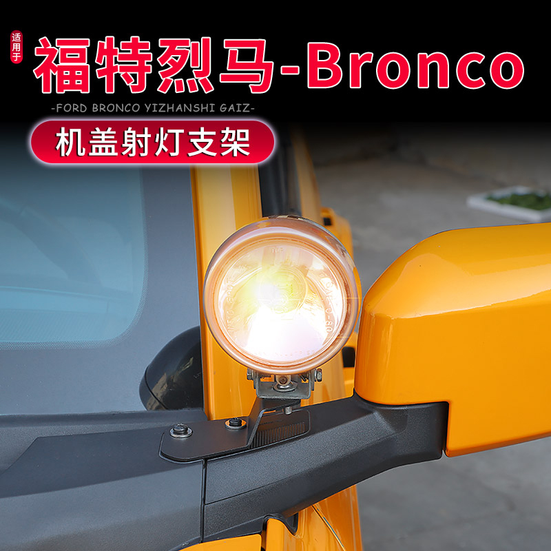 您的位置:他他商城  >   >  适用于21-25款福特烈马Bronco专用机盖A柱射灯支架改装照明灯底座