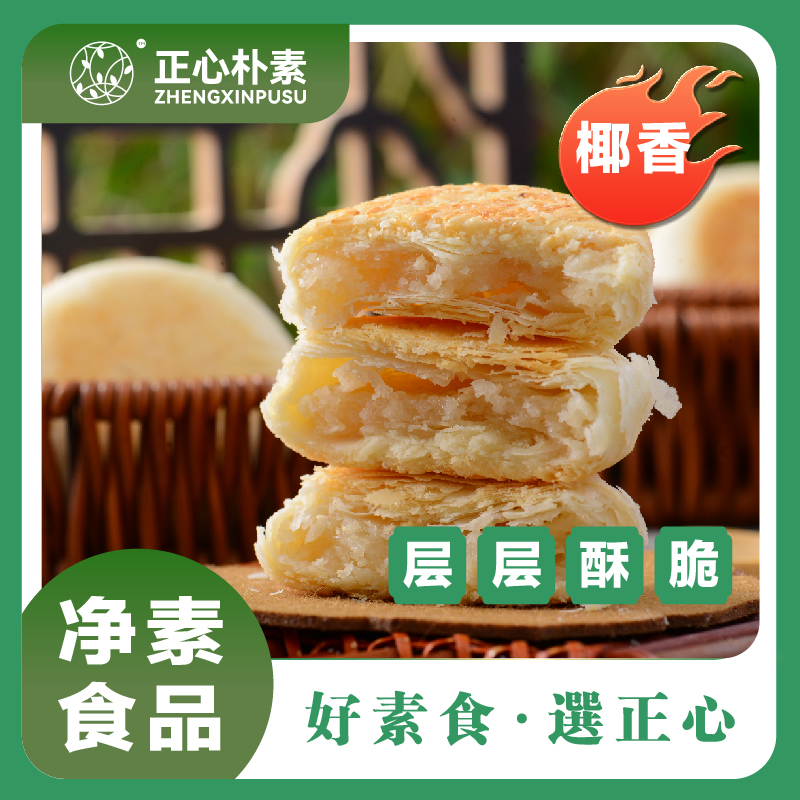 正心朴素绿豆饼干素糕点牛舌饼西施无葱蒜鸡蛋奶椰香早餐酥纯素食 - 纯素驿站