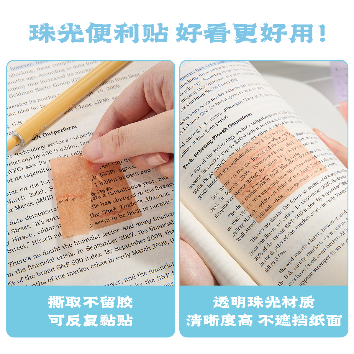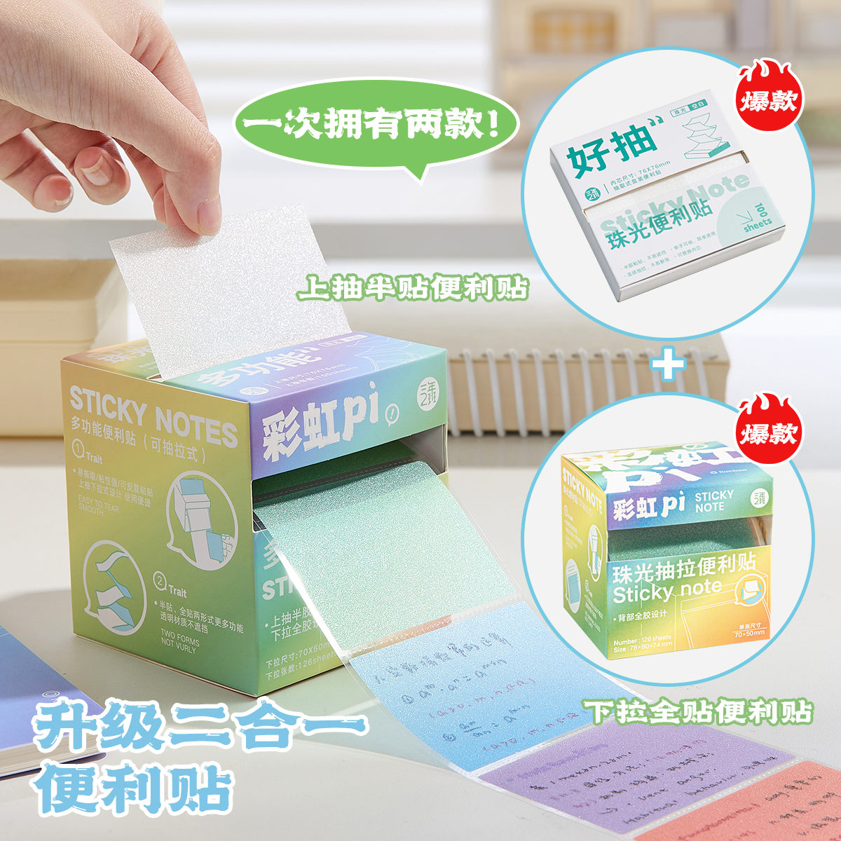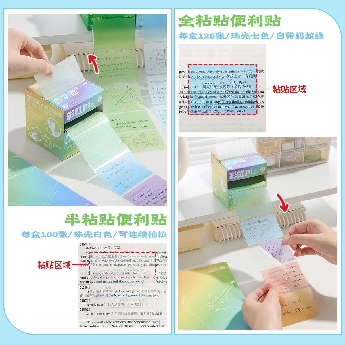 三年二班珠光抽拉便利贴多功能透明便签纸小学生贴粘性强防水可撕速干做笔记初中高中ins风高颜值办公拓展贴K - 三年二班文具旗舰店