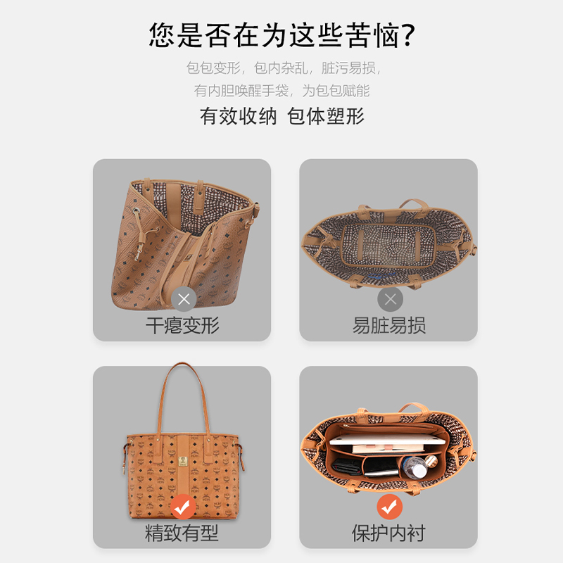 适用mcm托特包子母内胆包中包菜篮子mini整理收纳包内衬包袋撑形 - 小雨儿 品牌包内胆