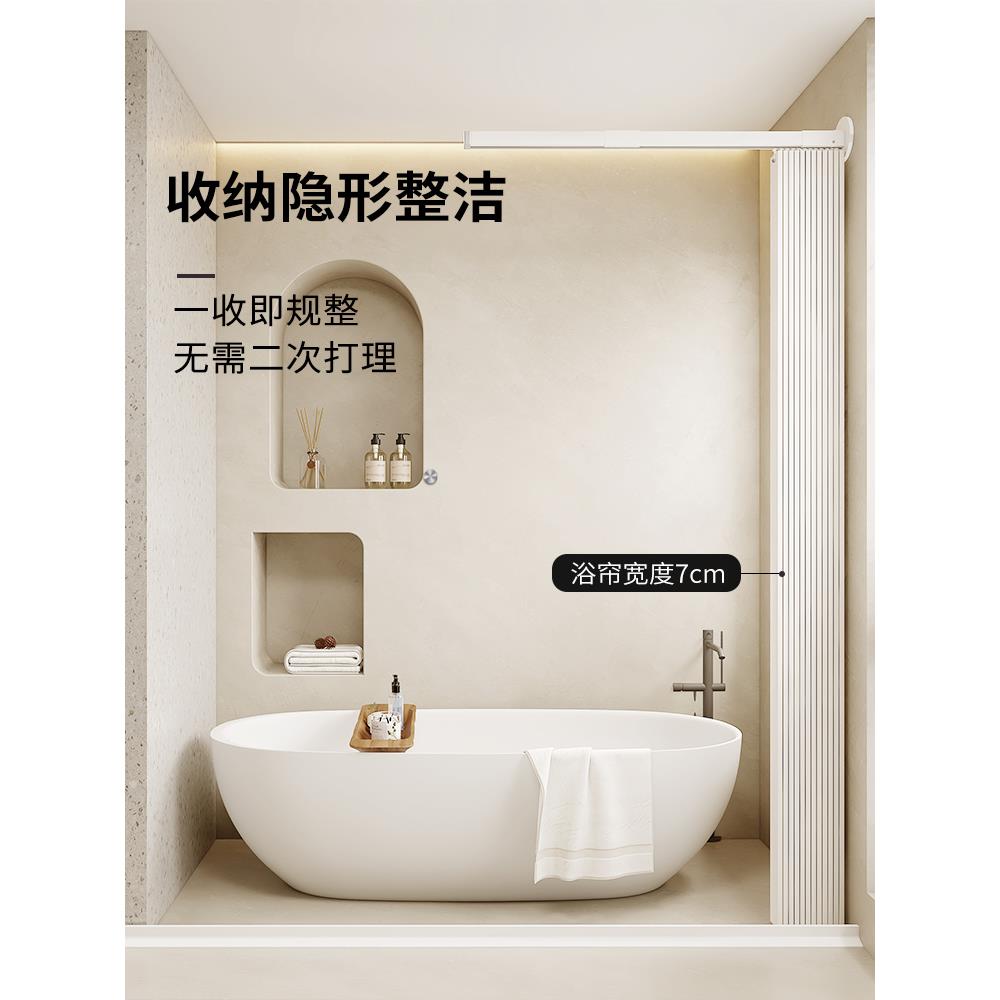 单面隔断帘浴室折叠浴帘浴室隐形滑动帘无打孔干湿分离防水防霉 - 诺泰百货官营店