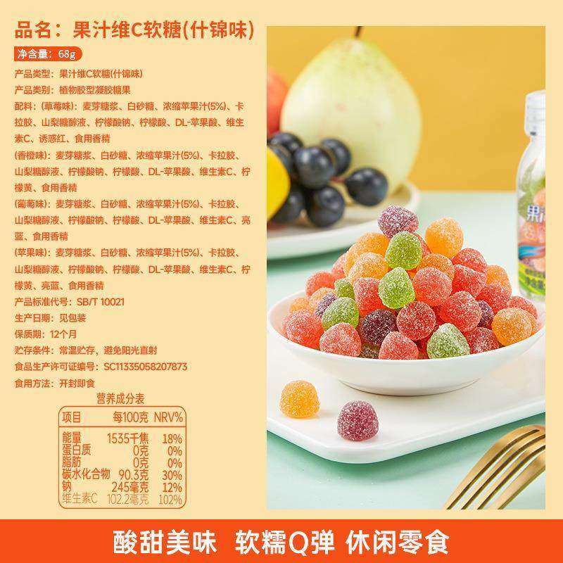果汁维C软糖水果味含维生素C糖果Q软糖多口味酸甜童年小零食特卖