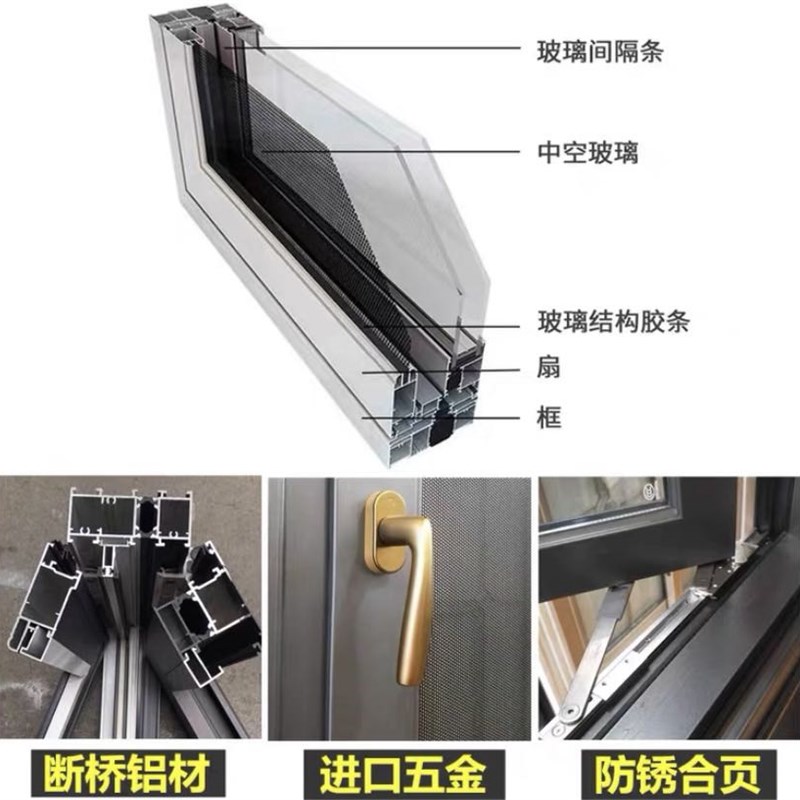 浙江宁波断桥铝门窗定制封窗封阳台铝合金平开推拉落地窗纱窗一体
