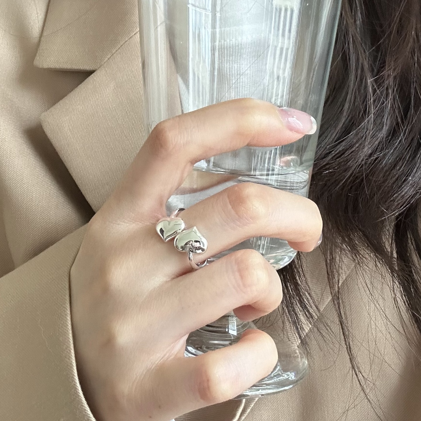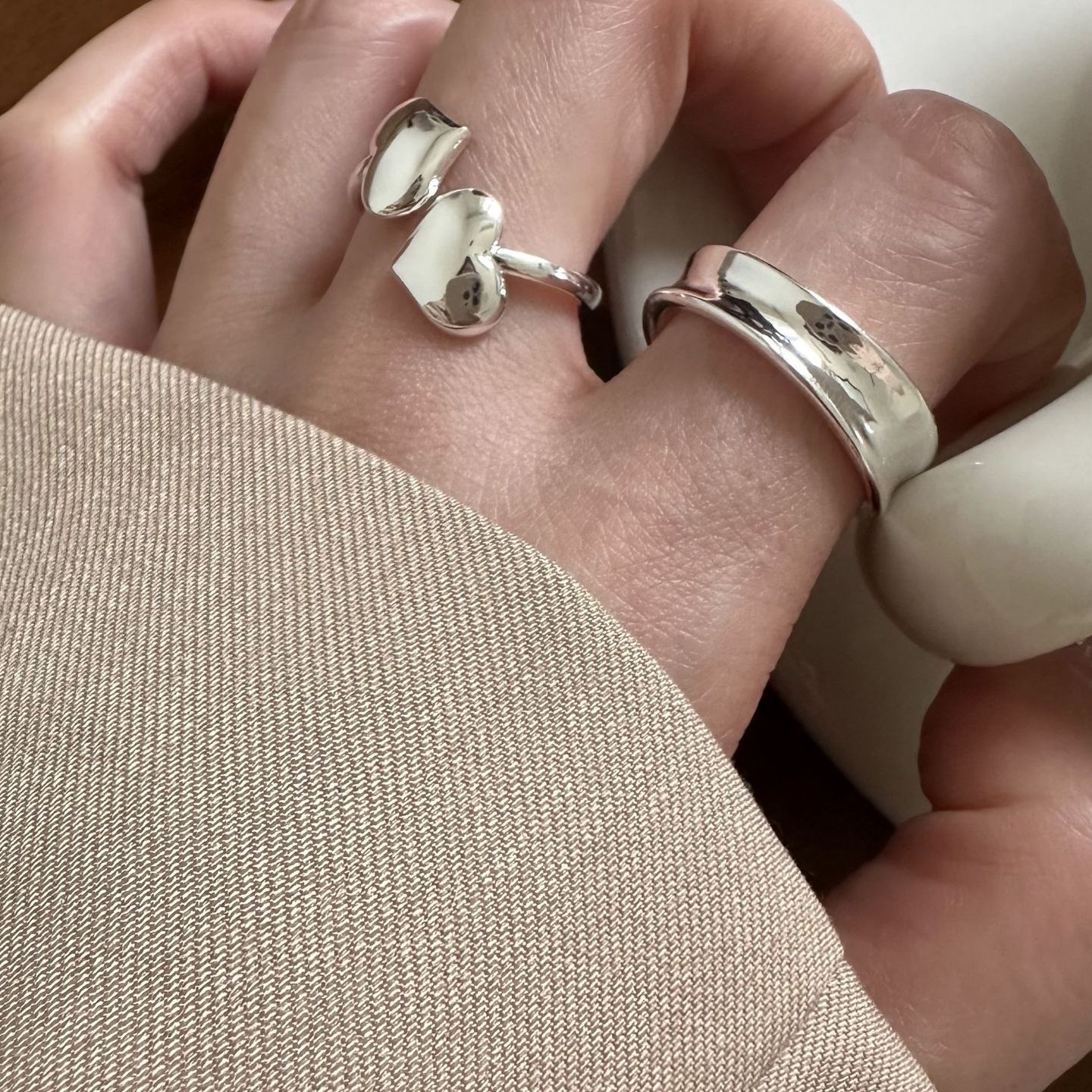 美汝仙 纯银波浪戒指女韩版简约时尚气质百搭开口设计指环组合叠 - 美汝仙