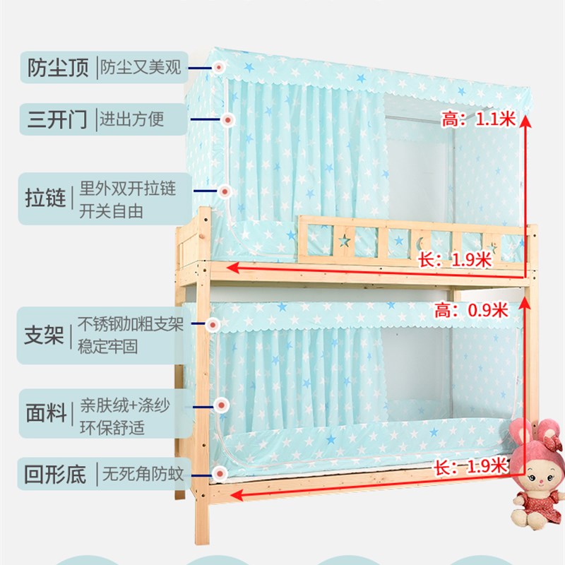 您的位置:他他商城  >   >  学生宿舍蚊帐 夏天上铺用遮光布侧开门床帘一体式下铺拉链款男生