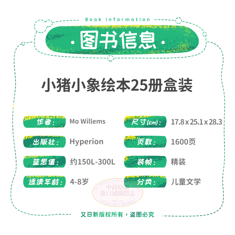 您的位置:他他商城  >   >  小猪小象绘本25册盒装 配书立 Elephant & Piggie 精装 英文原版 25本绘本 系列章节 吴敏兰推荐 组合包装【中商原版】 又日