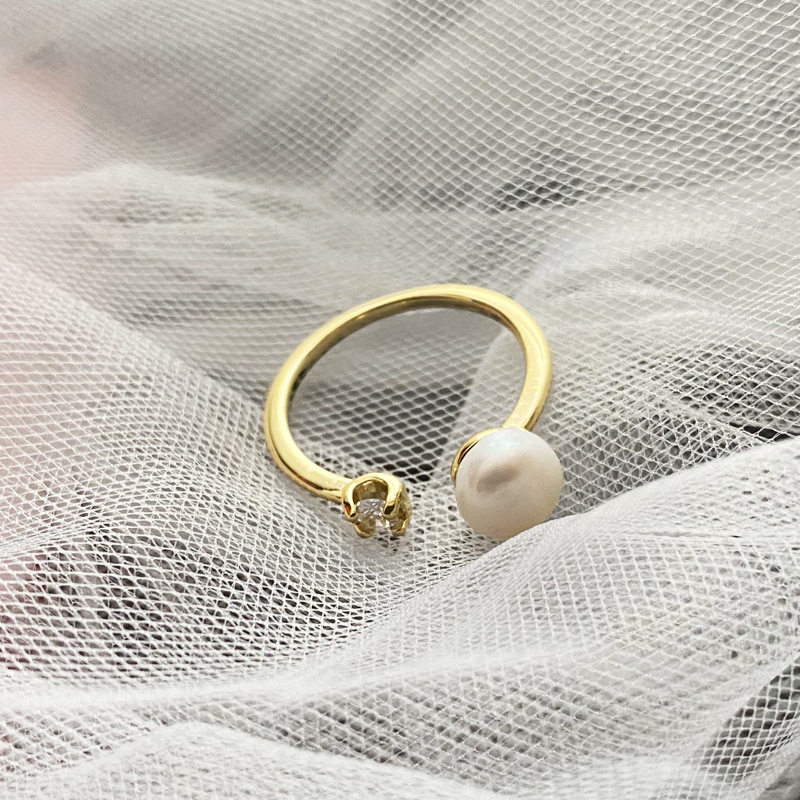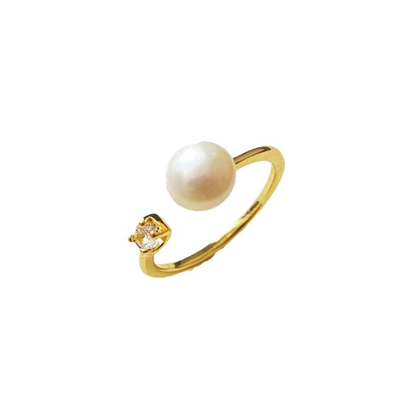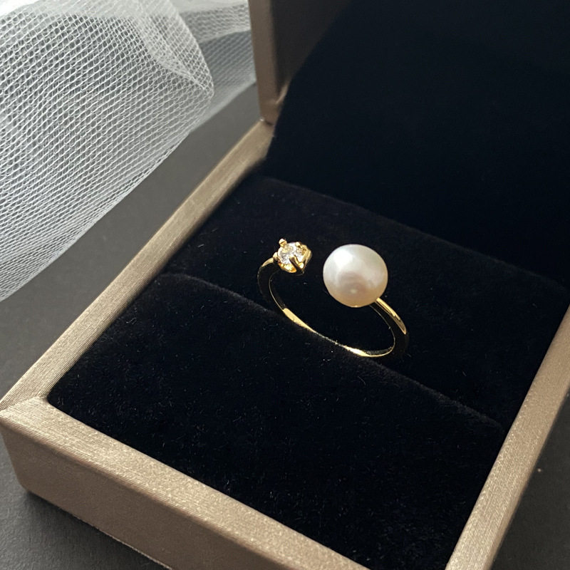 XKDDCT天然淡水珍珠开口戒指铜合金真金保色电镀指环简约ins风手 - XKDDCT
