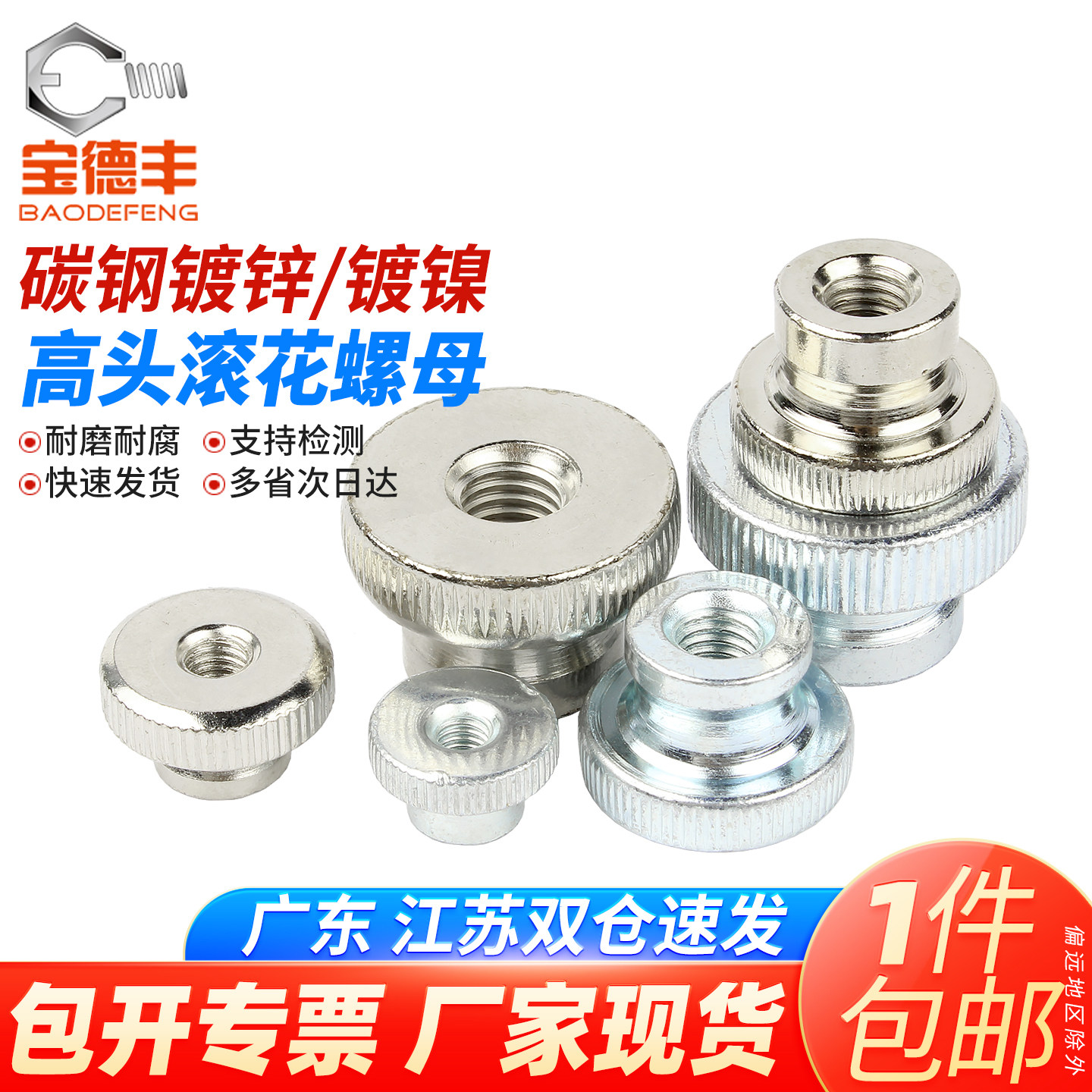 304不锈钢高头滚花手拧螺母 铁镀锌螺帽 镀镍大头手扭螺丝帽大全 - 宝德丰旗舰店