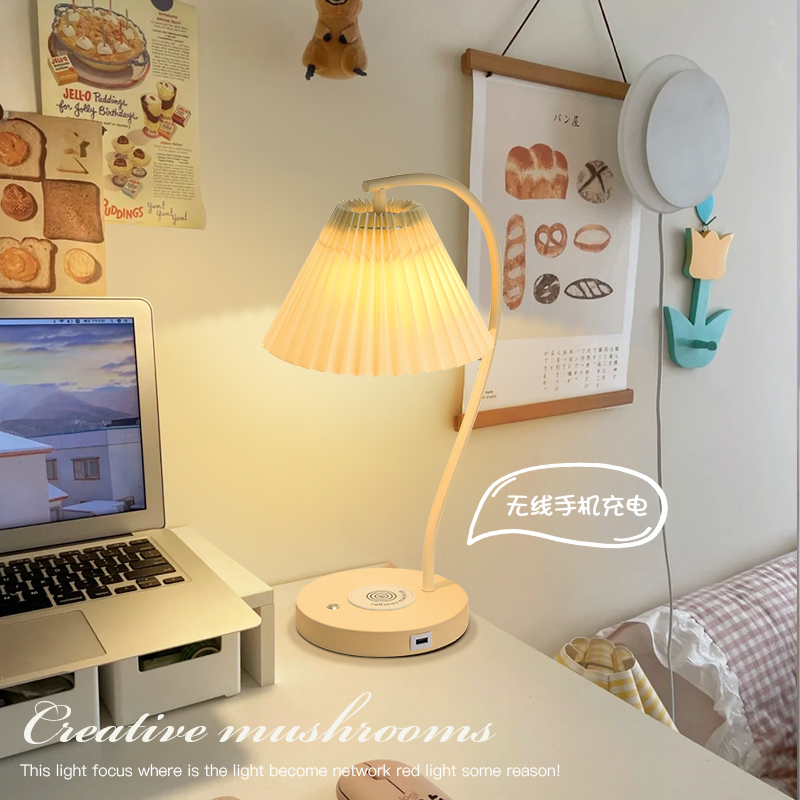 奶油风装饰台灯卧室复古无线充电法式房间中古网红U摆件氛围床头