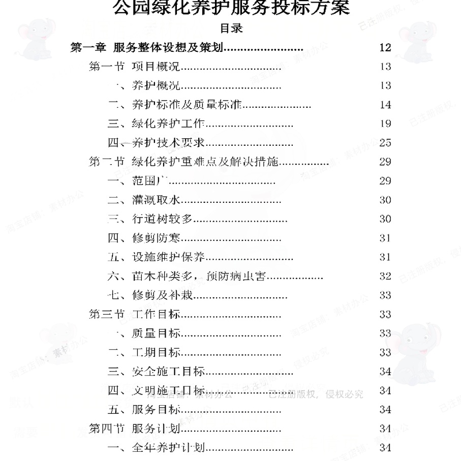 公园绿化养护服务投标方案项目保洁参考范本模板可编辑文档word - 素材办公