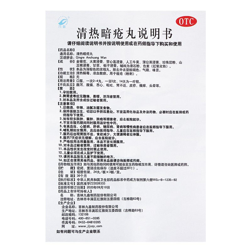 九鑫 清热暗疮丸72丸 清热解毒凉血散瘀暗疮痤疮粉刺解毒祛痘除湿 - 弘毅药品专营店