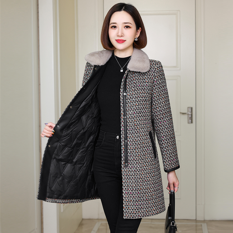 卡若维娅冬季新款皮草毛呢外套女中长款水貂领鹅绒羽绒服呢子大衣 - 卡若维娅旗舰店