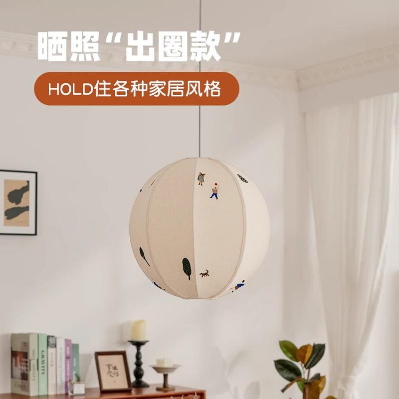 布艺刺绣儿童房卧室吊灯全光谱护眼书房餐厅灯创意吧台卡通圆球灯 - uxiwqdyvbq的小店