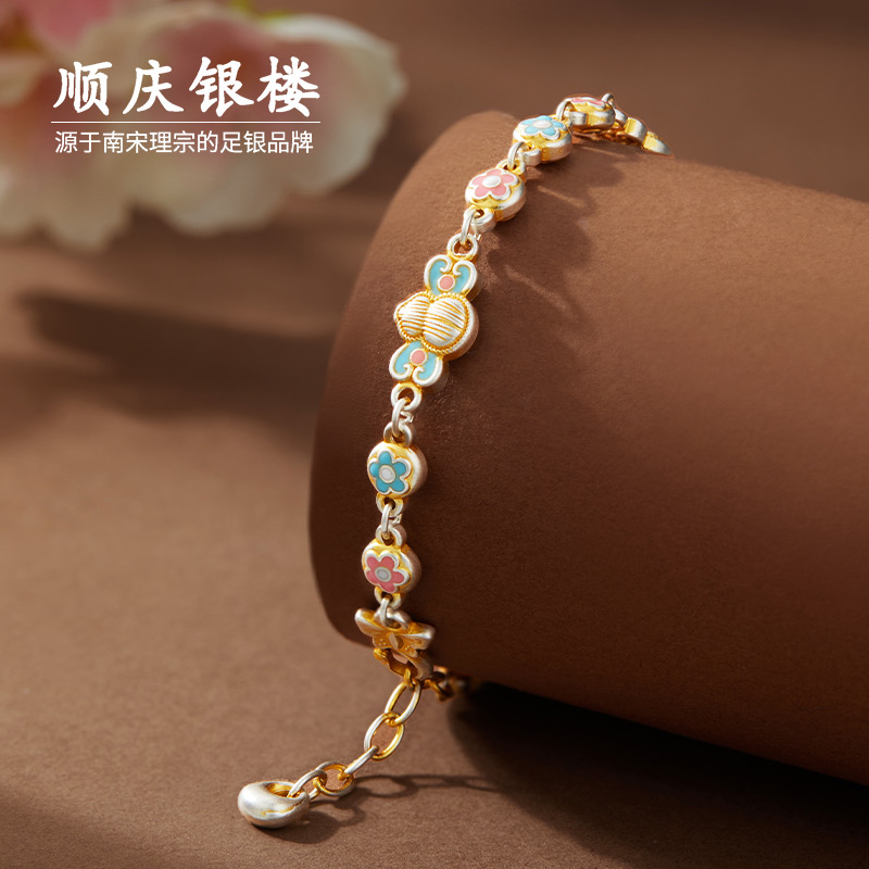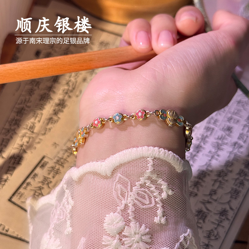 顺庆银楼足银S9999芦花珐琅手链女款新中式国风高级感百搭送礼物