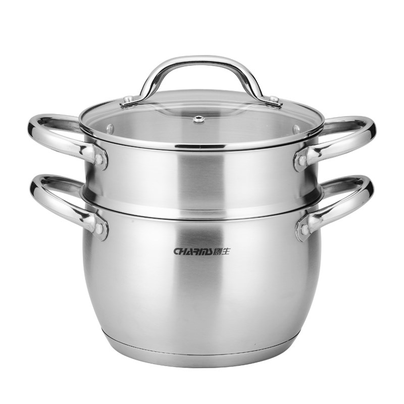 创生蒸锅30不锈钢层加厚复底明火电磁炉通用锅具蒸笼20/22cm